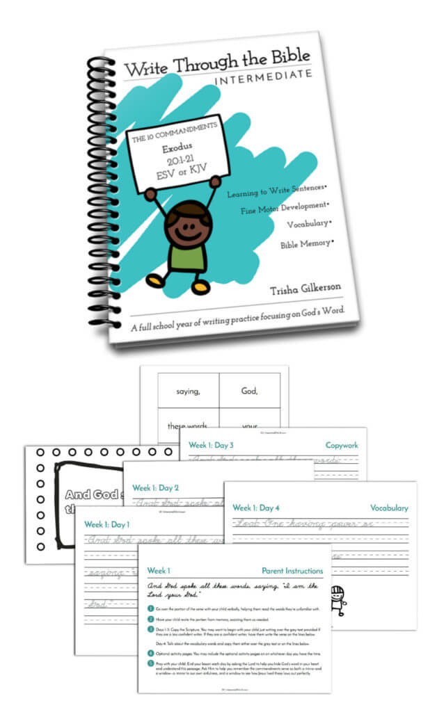 Our family is memorizing the 10 Commandments together this year, so we’ll be using that version of Write Through the Bible Intermediate.