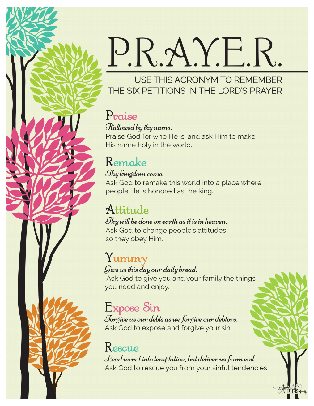 - A simple acronym to teach kids the basics of prayer (based on the words of Jesus)