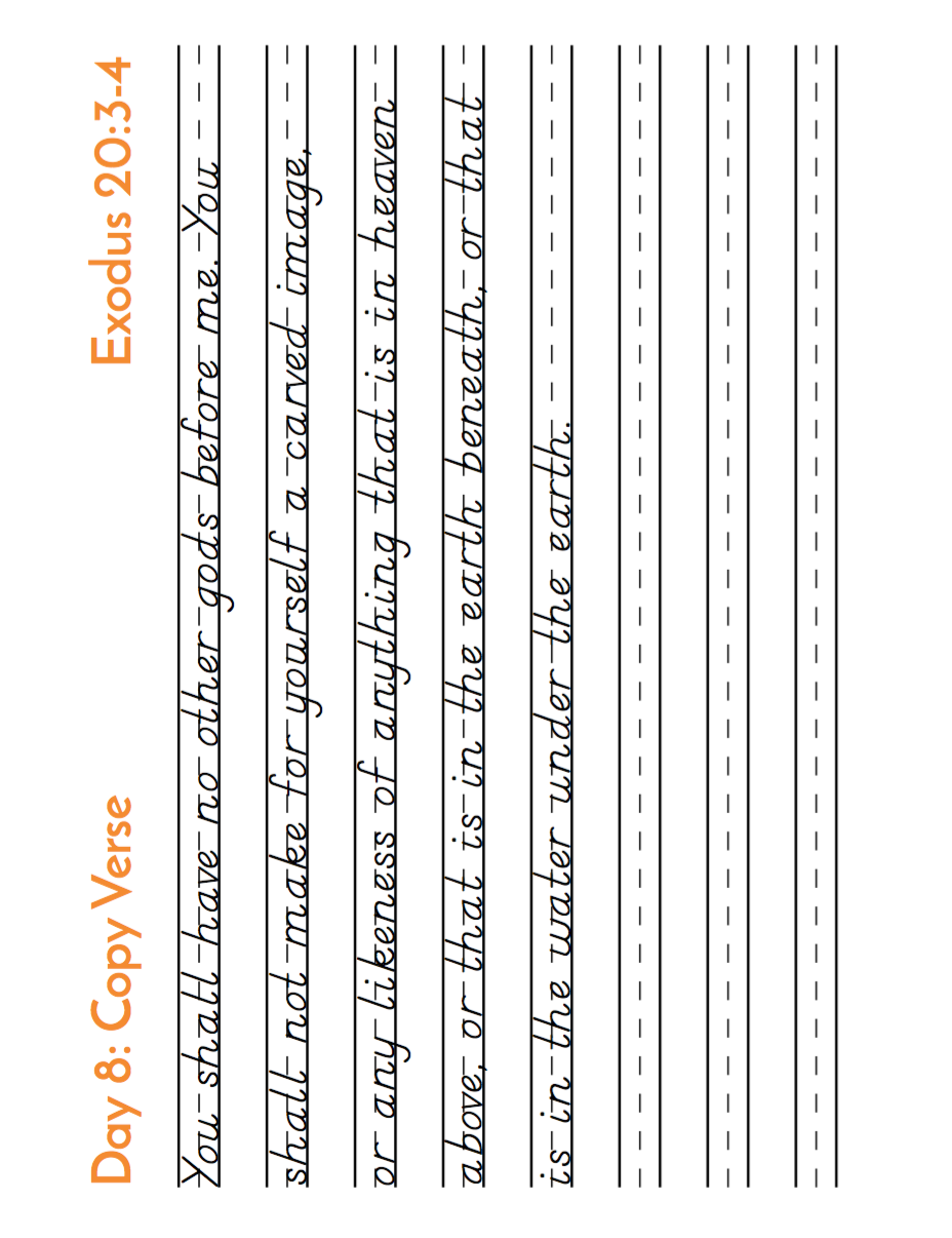 We are excited to use this workbook this school year. It will be the perfect handwriting book because we are learning Exodus 20 in Classical Conversations this cycle! I love the layout of this workbook!
