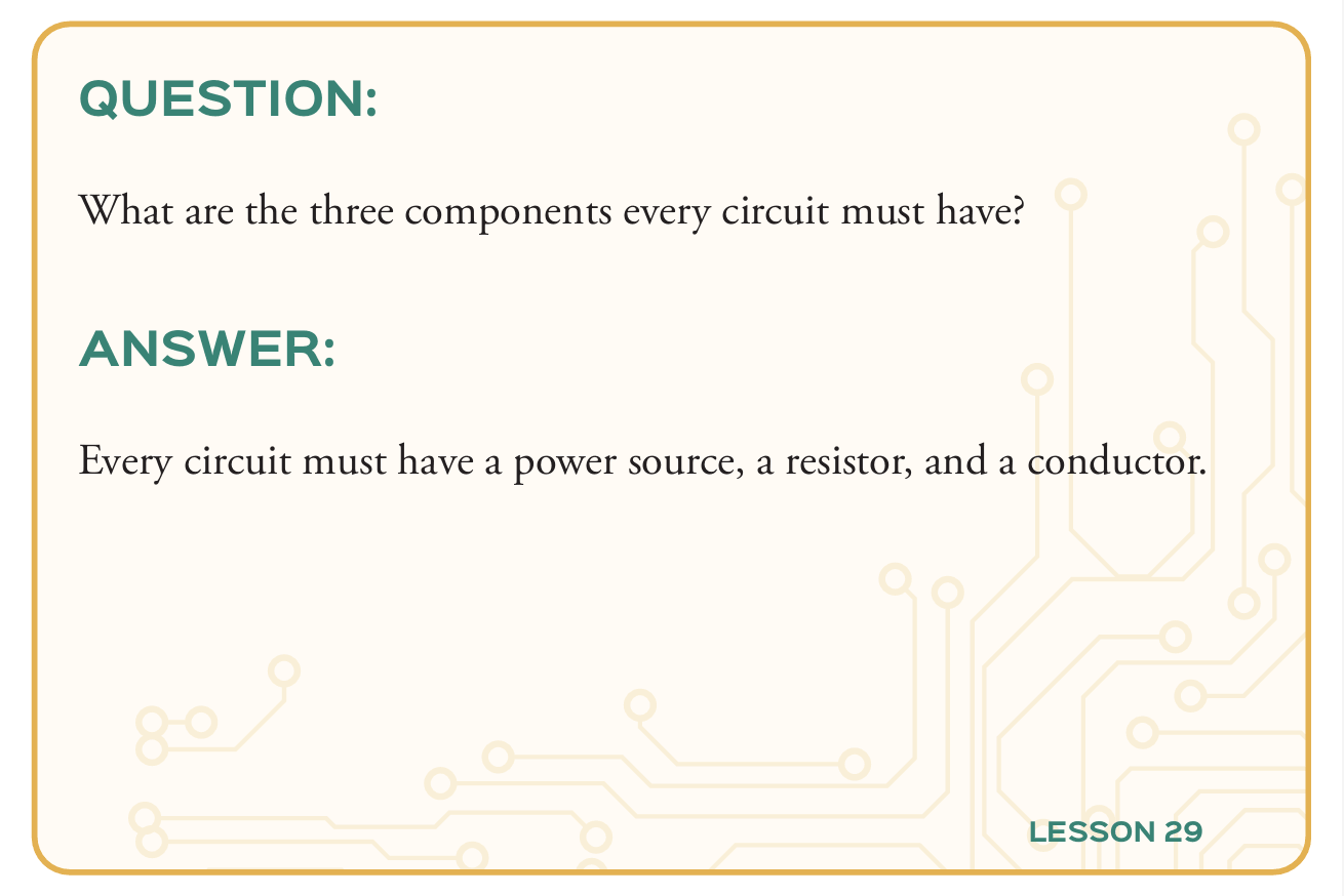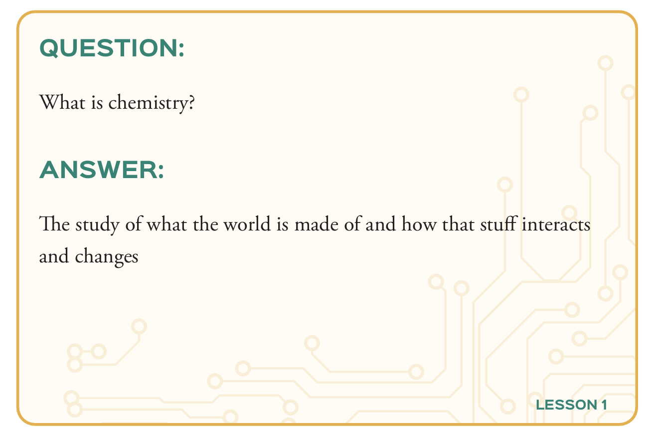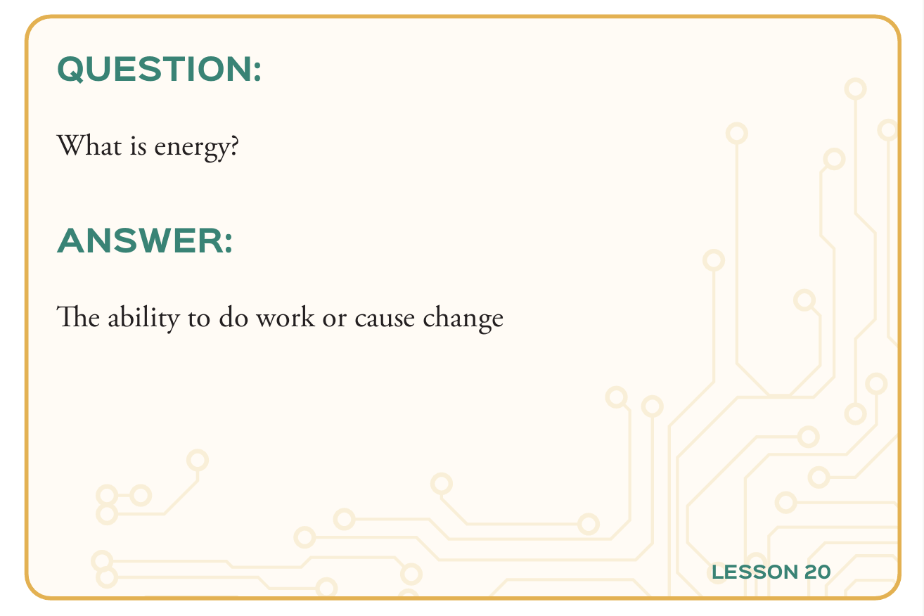When students register for the Physical Science Explored Elementary course, they receive digital versions of these cards (81 full-color cards in the set) and will have access to 30 “Memory Videos” to reinforce the concepts on the cards. If parents or student prefer physical cards, they can be purchased here.